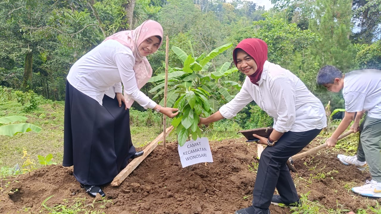 Desy Ariyanti, Camat Wonosari (kiri), tanam pohon secara simbolis